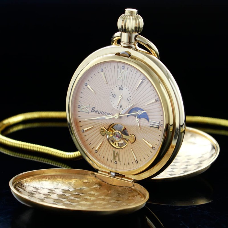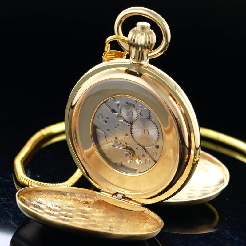 - 【Double Open Pocket Watch】: 100% brand new pocket watch with excellent workmanship, Precise mechanical movement, Elegant case with chain.Fit for casual environment and business occasion.Double cover design can open and stand up on the table.Open this pocket watch, you can post your favorite photos on the upper watch case. Very unique design.