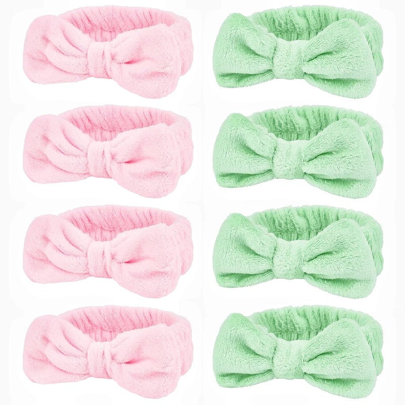 TIOSRU 8 pack spa headbands for washing face-green+pink