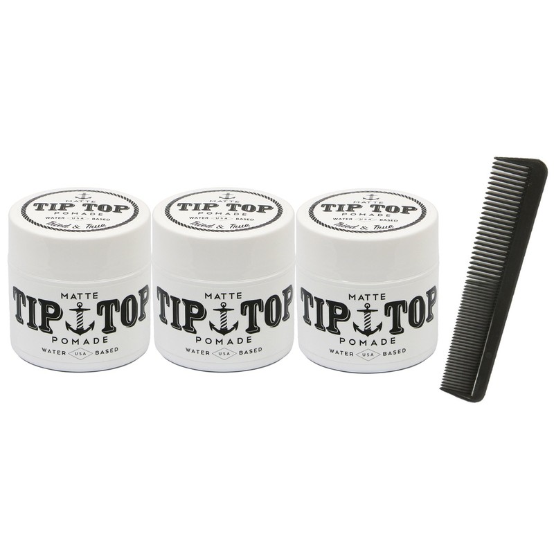 Tip Top's Matte Pomade is a Medium Hold Water Based Pomade that gives an All Day Hold with No Shine for that Natural Look with the Tip Top Signature Mild Scent. It is Ideal for Any Traditional Barber Haircut or Style. This product is water soluble and washes out easily. Formulated, manufactured, tested, and approved by Tip Top's barbers in So Cal USA.