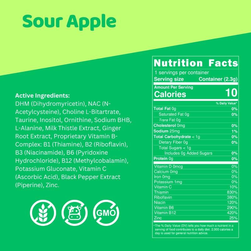 Includes electrolytes, B-vitamins, milk thistle, and antioxidants