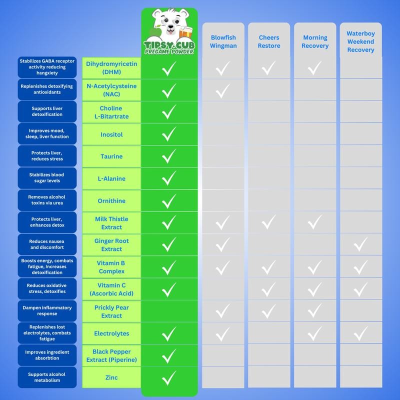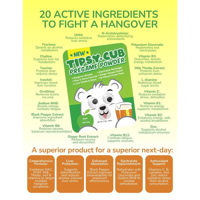 TIPSY CUB Pregame Powder – 6-Pack Hydration & Liver Support Drink Mix for Smarter Drinking – Electrolytes + Vitamins