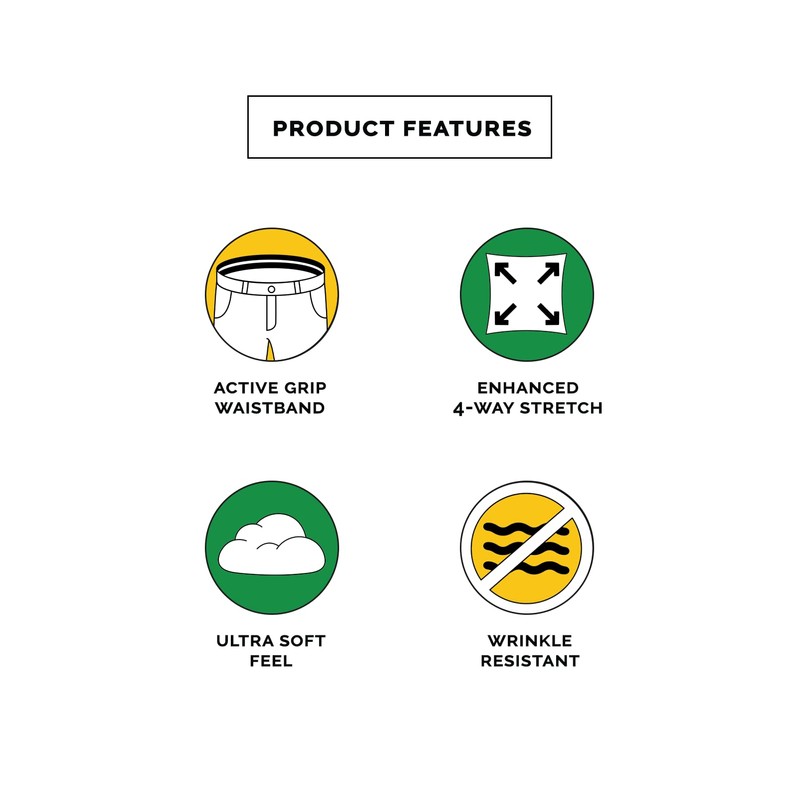 • ACTIVE GRIP WAISTBAND Our mens golf pants come with a rubberized lining that grips your shirt to keep it confidently tucked in while you play.
