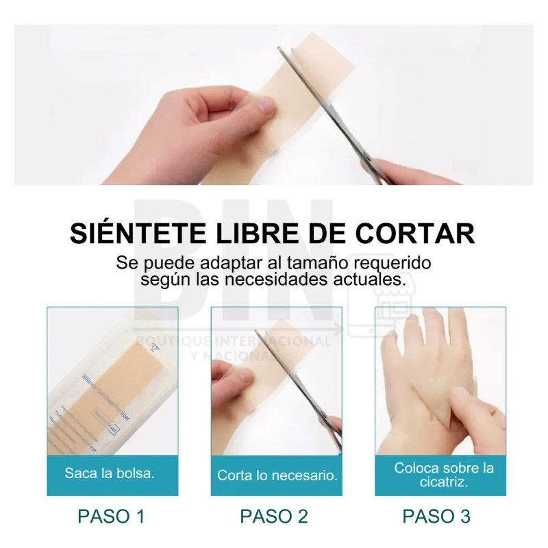 Descubre el poder de la renovación con nuestras Tiras de Silicona, diseñadas especialmente para ayudar a eliminar cicatrices de acné y queloides. 🌟 ¡Di adiós a las marcas no deseadas y saluda a una piel más suave y uniforme!