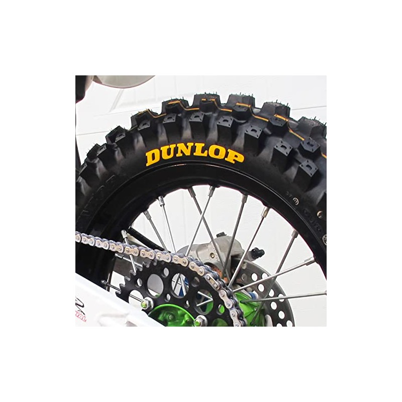 Tire Stickers - Yellow Dunlop Motorcycle Stickers - Permanent Tire Lettering Includes Glue & 2oz Touch-Up Cleaner (Pack of 4)