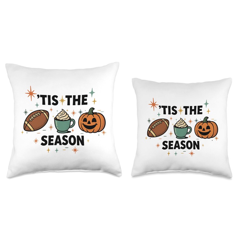 Tis The Season Fall Vibes - Football, Coffee, Pumpkin Autumn Throw Pillow