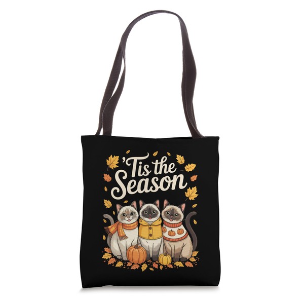 Tis The Season Siamese Cat Fall Autumn Pumpkin Tote Bag