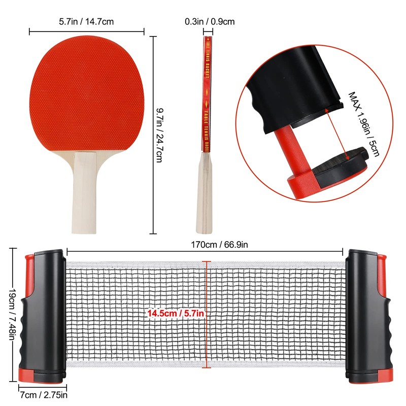- 【Überall spielen】Verstellbare Klemmen zur Befestigung an Tischoberflächen mit einer Dicke von bis zu 2 Zoll und einer Länge von bis zu 75 Zoll. Netzhalterungen können auf fast jeder Oberfläche befestigt werden - Spielen Sie Tischtennis auf dem Schreibtisch oder Kinderunterhaltung für Erwachsene auf einem Esstisch zu Hause, um den besten Genuss zu erhalten, den Sie jemals für Ihre Familie haben würden.
