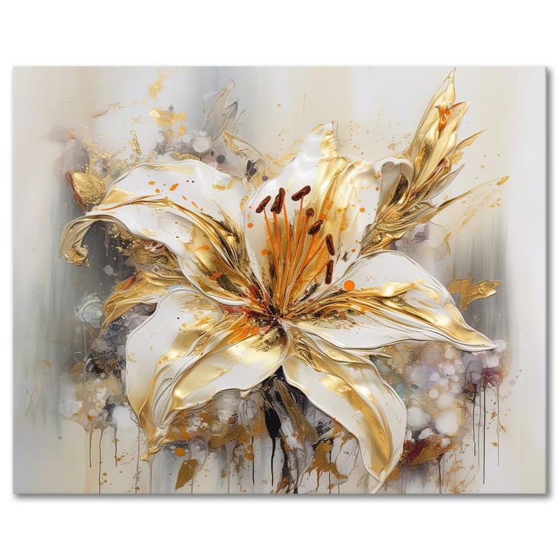 TISHIRON Paint by Numbers for Adults Beginner Gold Flower Adults' Paint by Number Kits Lily Floral DIY Oil Painting by Numbers with Brushes Blooming Art Crafts 16"x20"(Frameless)