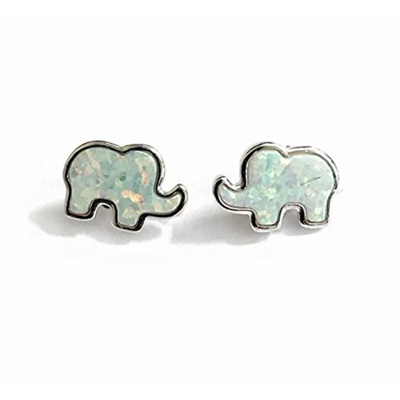 Tisoro 925 Solid Sterling Silver White Opal Lucky Elephant Stud Earrings –...