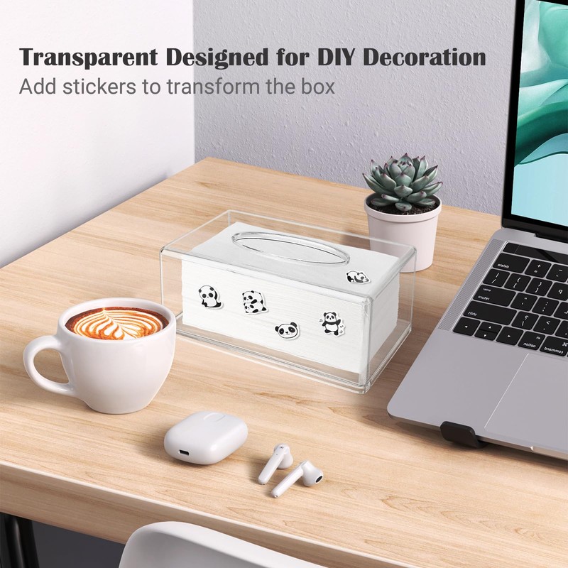 - Express your creativity with our Acrylic Tissue Box Holder, designed for DIY decoration. This clear tissue box cover provides the perfect platform for personalization and decoration. Add your favorite stickers to transform an ordinary tissue box into a unique work of art. Whether it's your living room, bedroom, or office, this decorative tissue box holder allows you to make a statement and add a personal touch to any space.
