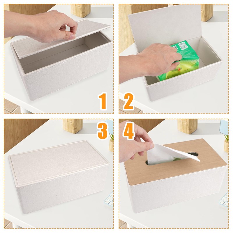 - FASHION & DIRT RESISTANT The waterproof PU leather surface of the square tissue box is easy to wipe clean. The household tissue box fits different decor styles, perfect for your bathroom, bedroom, living room, office, vanity, dining table and more
