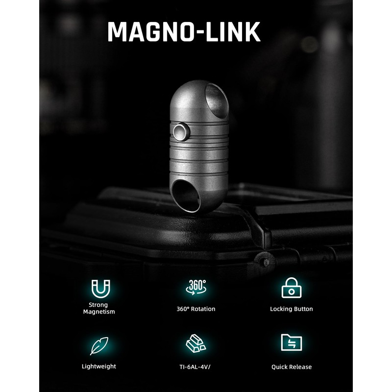 - Magnetic Quick Release Keychain: Simply press and hold the locking button and pull to either side to quickly detach the titanium magnetic connector. Bring the two ends close together and the keychain linker will automatically attach and connect. Quick and easy to use.