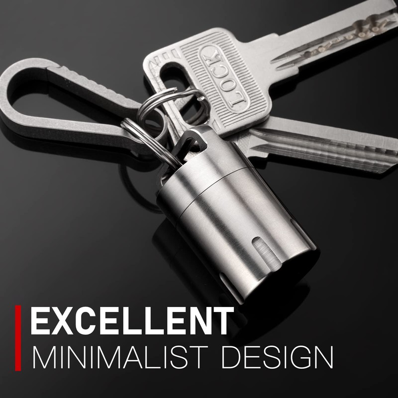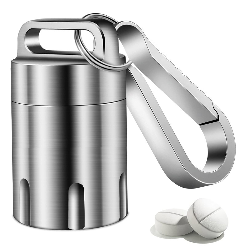 TISUR TISUR Titanium Small Pill Holder Keychain, Portable Pill Case Waterproof Pocket Pill Box Container Carrier to Hold Pills, Vitamins, Fish Oil, Supplements
