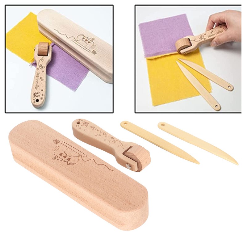 TITA-DONG Tailors Clapper Seam Roller Point Turner Sewing Tool, Wooden Sewing Tool Set with Seam Roller and Point Turner for Quilting for Sewing Quilting