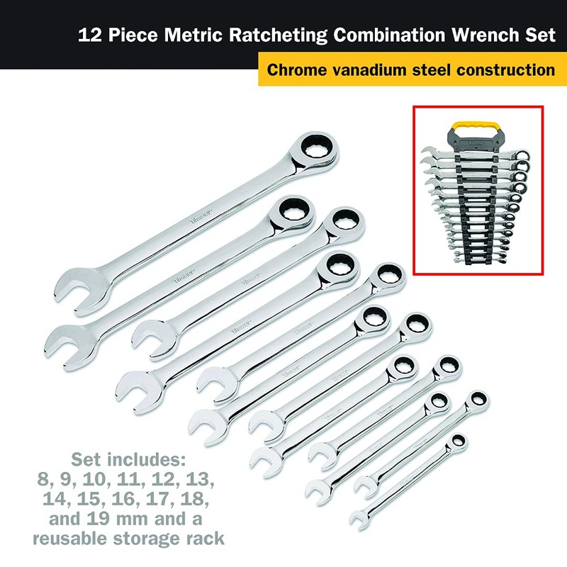 12 pc Ratcheting Combination Wrench Set (Metric)