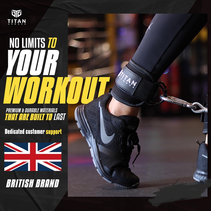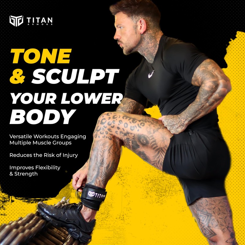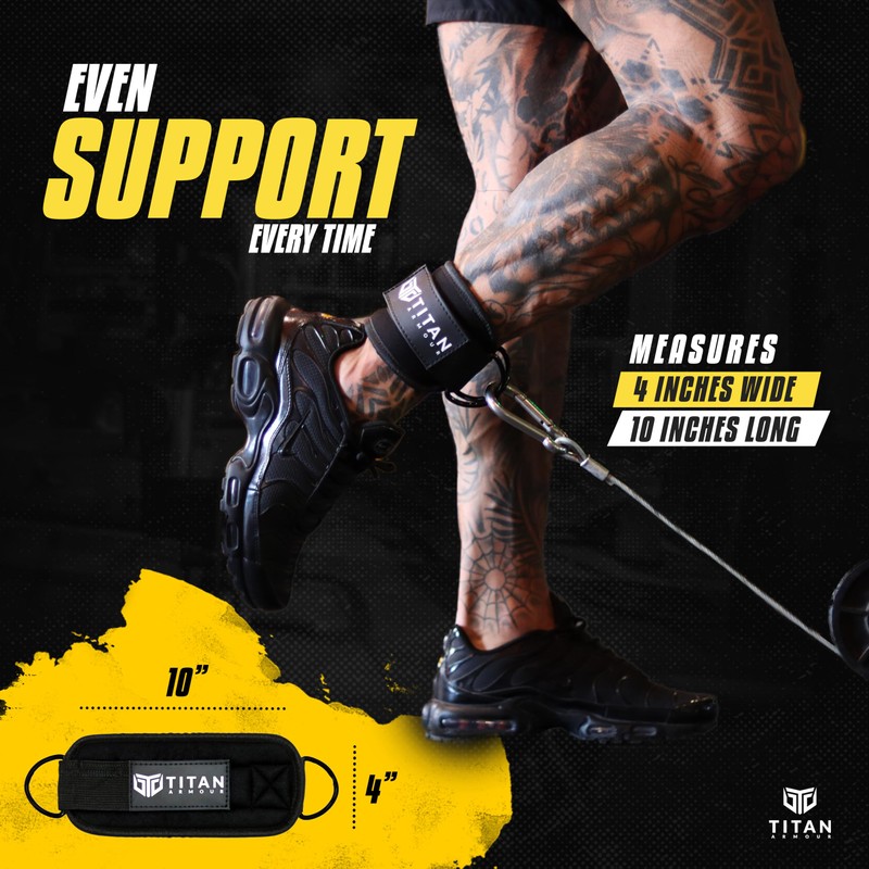 Titan Armour® Single Ankle Straps for Cable Machines | Gym Cuffs w/Heavy-Duty Steel Double D-Rings & Adjustable Strap | Lower Body Workouts Inc. Leg Curl & Glute Kickback (Black)