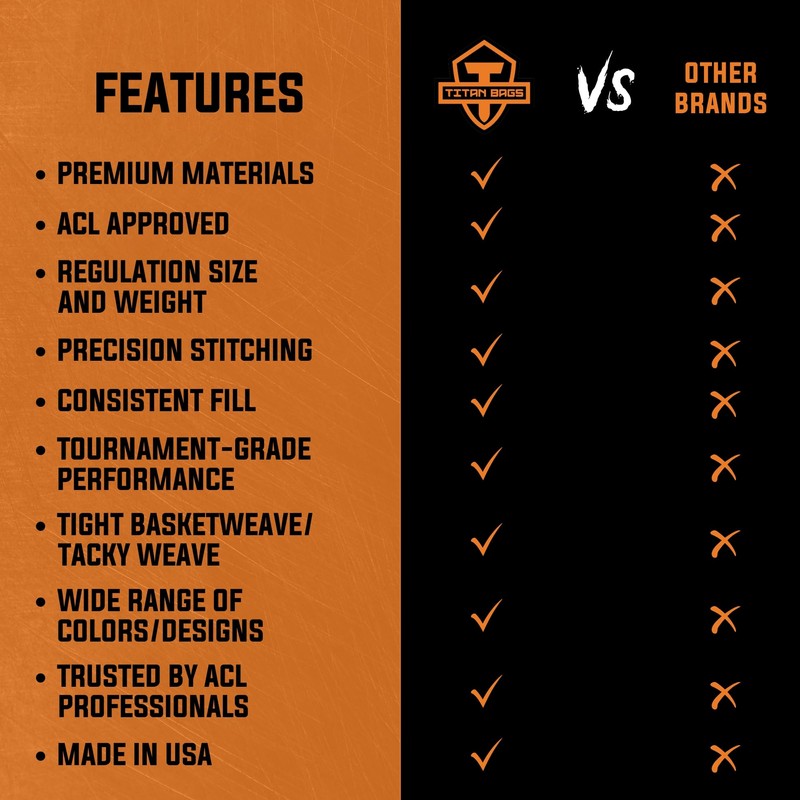 - TITAN BAGS: We pride ourselves on making cornhole gear that can meet the demands of today's players. Our line of pro-quality bags and cornhole boards are proudly designed and manufactured in the USA. We believe in providing top-tier customer service and will do whatever we can to resolve any issues you may have.