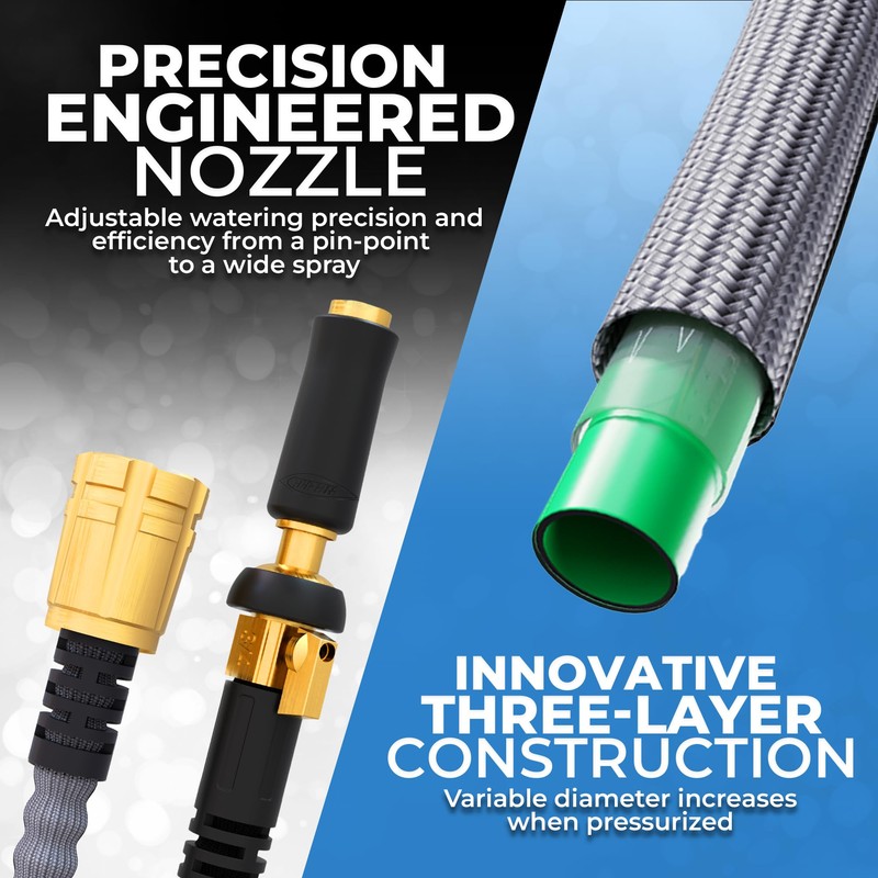- [Feather-Light, Super Strong] Redefining watering with its incredibly lightweight design, experience unmatched watering efficiency with our Titan garden hose. When paired with our precision-engineered nozzle, this hose delivers exceptional pressure for everyday watering tasks while saving you water. Ideal for garden maintenance, vehicle cleaning, RV, marine use and more, for a powerful and consistent water flow.