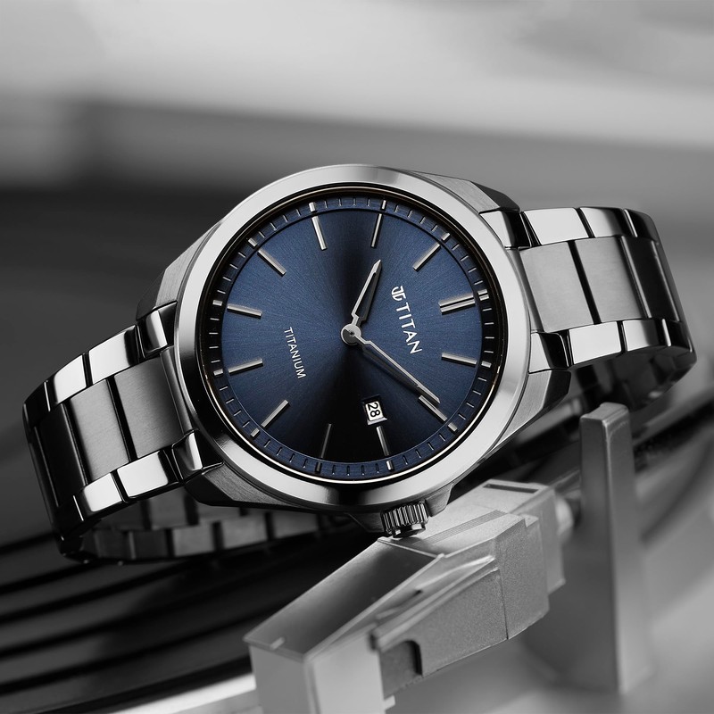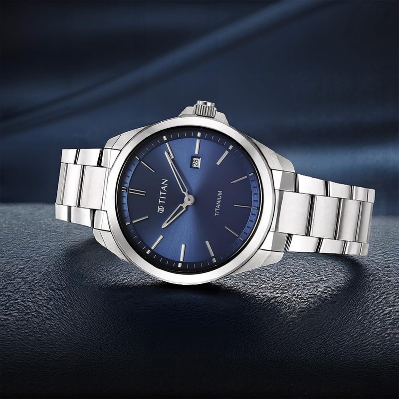 Titan Men Analog Blue Dial Casual Watch, Titanium Built