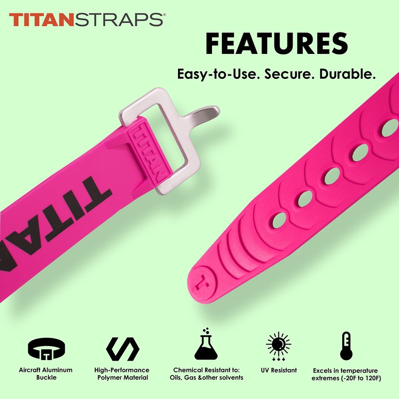 - A REPUTATION YOU CAN TRUST: Titan Straps were designed to excel in sunny climates and frigid temperatures and as a solution to secure equipment for individuals and professionals performing plumbing, electrical work and construction or wood-working projects.