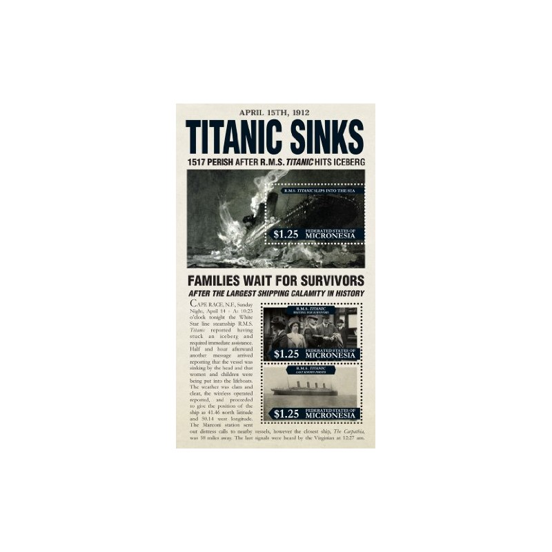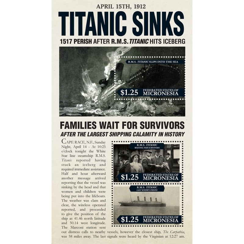 Titanic 100th Anniversary Stamps -- This is a beautiful Titanic collectible postage stamp, issued by Micronesia in 2012.