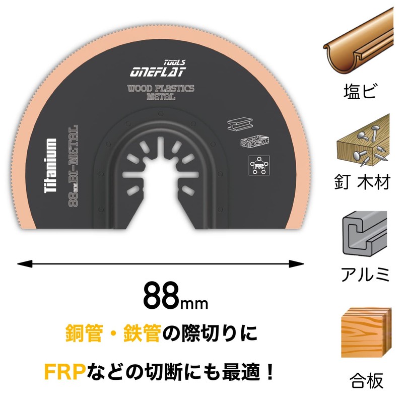 Titanium Coated Semicircle Blades, Set of 2, Bimetal, 3.5 inches (88 mm), Multi Tool, Replacement Blade, Light Metal, Wood, Long Life, Makita Hitachi BOSCH Compatible