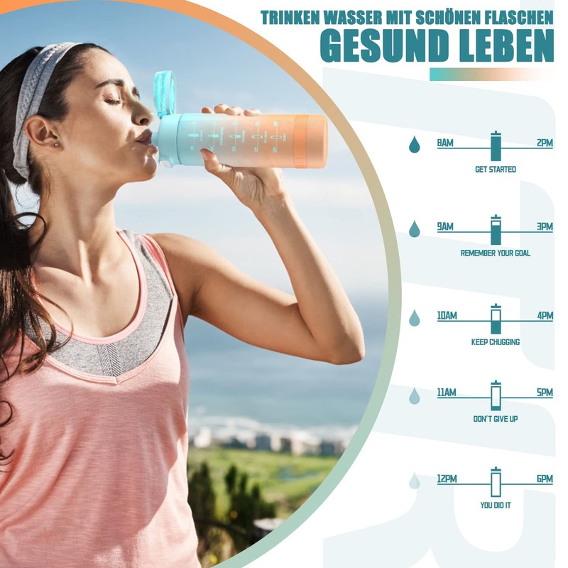 - TIME STAMPED WATER BOTTLE This 1 litre water bottle has clear scale marking, it helps you keep track of the amount of water you drink daily and encourage you to drink more water.
