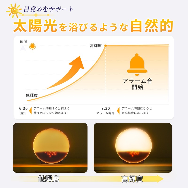 - "Bring the morning sun to your home and wake up naturally! A person is a creature that wakes up when exposed to sunlight. When you see the morning light, "I'm this morning! " signal transmits to the body and waking up naturally. Even those who don't like a loud alarm clock, they can welcome their day from the morning