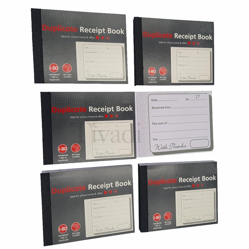 - PACK CONTENTS: Set of 6 duplicate receipt books, each containing 80 pages with pre-numbered receipts from 1-80 for organised record keeping