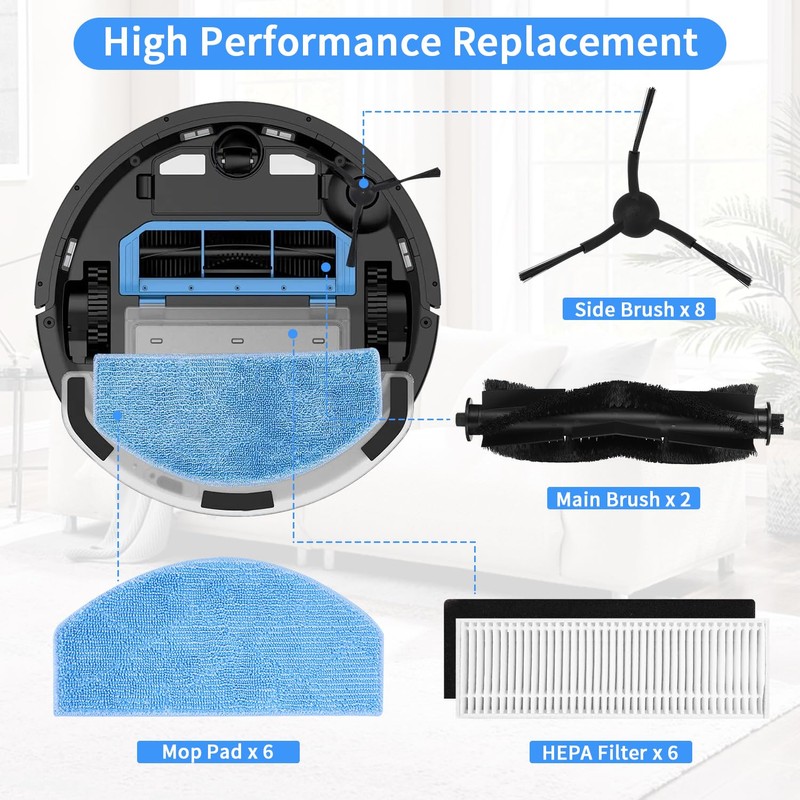 - Zubeh?rset Beinhaltet: Ersatzteilset f1r Tikom G8000 Pro mit Gummi-Hauptb1rste X2, HEPA-Filter X6, T1cher X6, Seitenb1rste X8, Reinigungsb1rstenwerkzeug X1