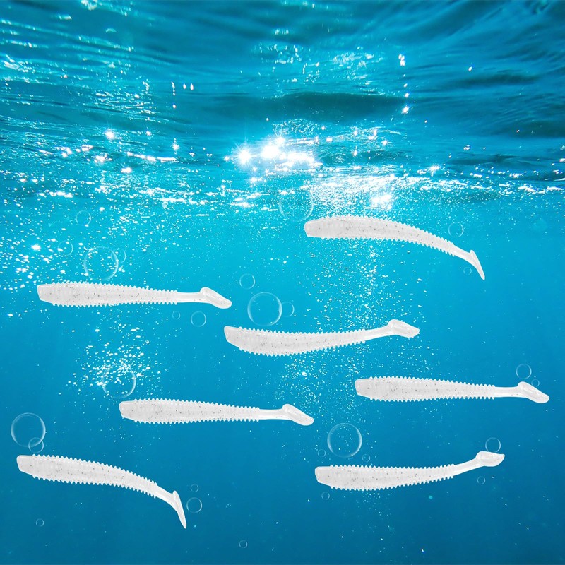 - PACKAGE CONTAINS:Length: 75mm / 2.95"; Fitting Hook: NO. 1/0 & NO. 2/0 Hooks; Color: White; Package Include: 30Pcs x Soft Fishing Lures