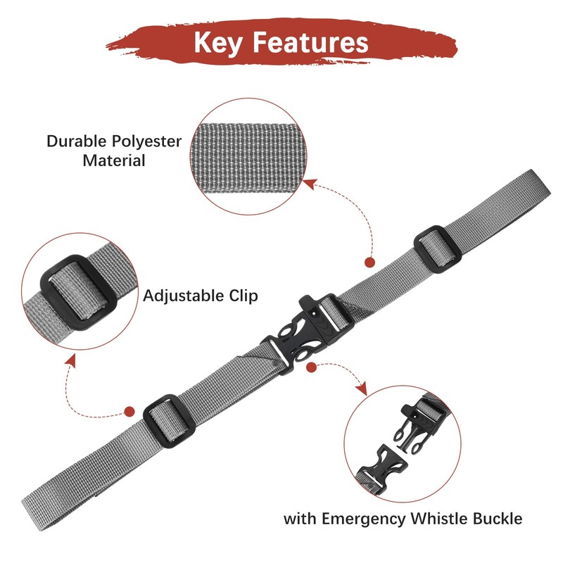 Our non-slip backpack chest strap is made of polyester, resistant to wear and pull for long-term use. The quick-release design can be quickly and easily connected and released, and the two adjustable buckles can adjust the length according to the body type, effectively preventing the backpack from loosening and falling, evenly distributing weight. The buckle also includes a whistle that can be blown outdoors to signal to a companion or issue a warning.