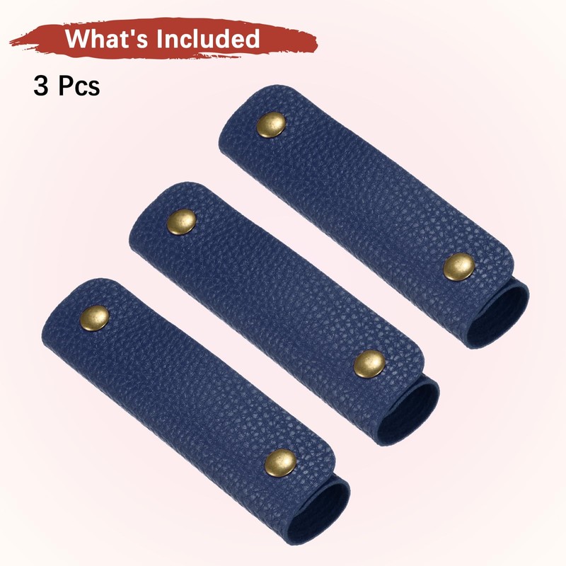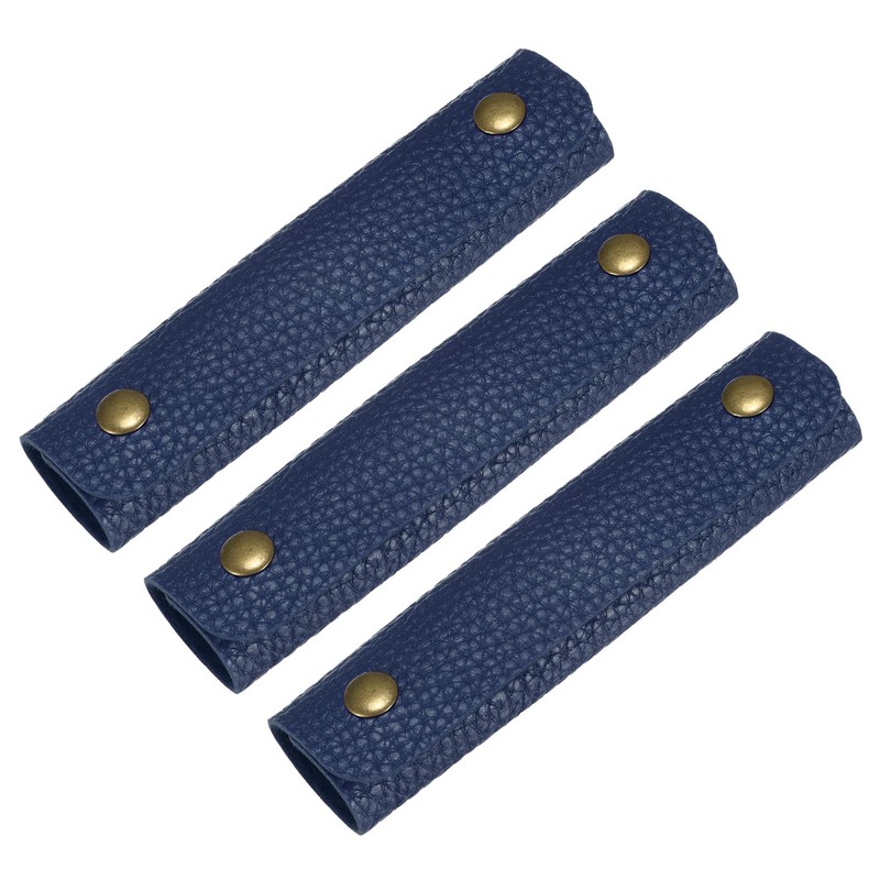 TIXIPEM Leather Handle Wrap [3PCS] - Handbag Handle Wrap Cover with 2 Metal Clasps Use for Suitcases & Bags & Shopping Totes & Wallets - [Navy Blue-5IN/12CM] Soft Purse Strap Pad