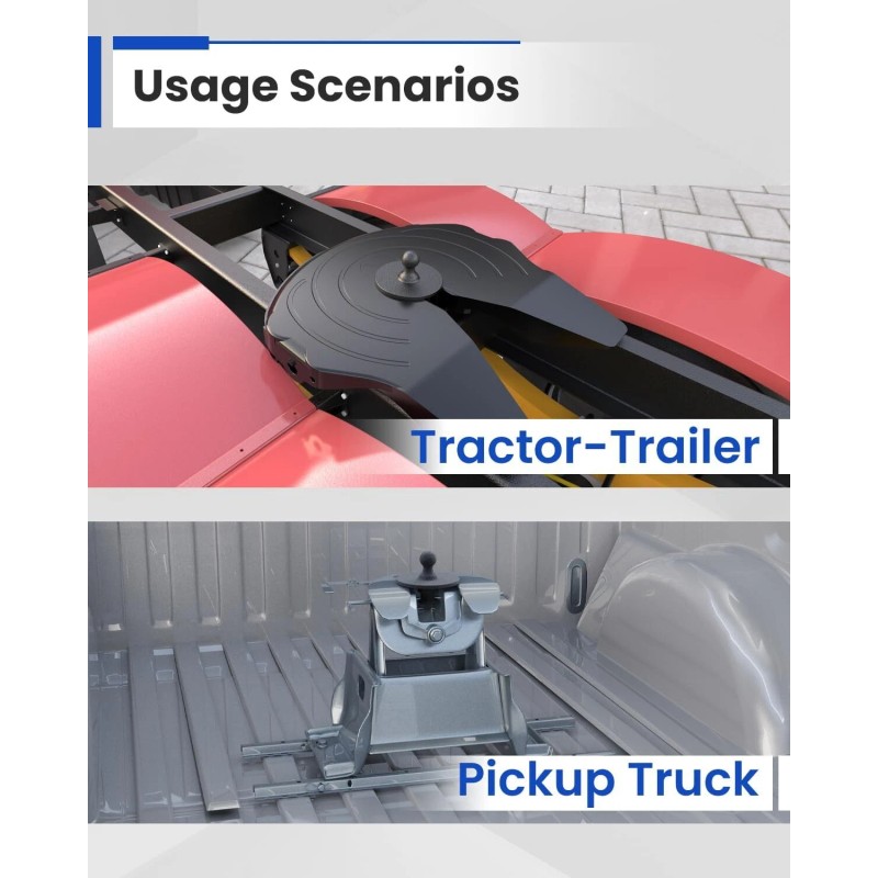 • 𝗗𝘂𝗿𝗮𝗯𝗹𝗲 𝗖𝗼𝗮𝘁𝗶𝗻𝗴:The fifth wheel hitch uses a special coating that has passed salt spray testing;is corrosion-resistant and durable;and can withstand the test of time and harsh weather.