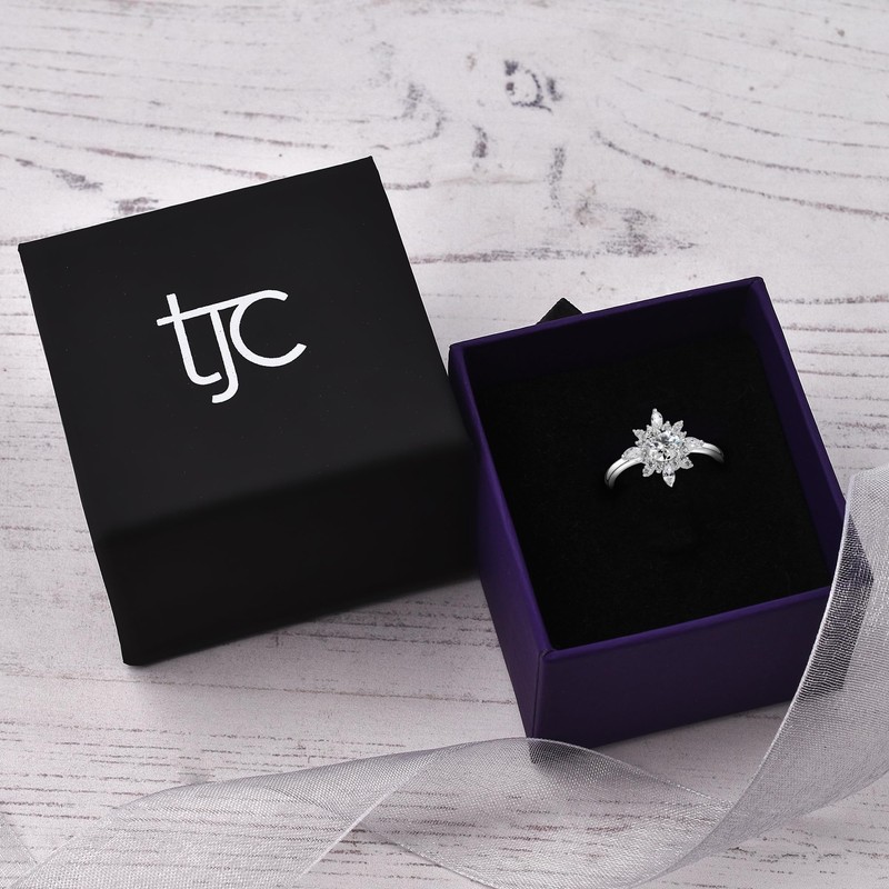 TJC Band Ring White Diamond Size O with Prong Setting in 925 Sterling Silver for Women April Birthstone Metal Wt. 3.06 Grams