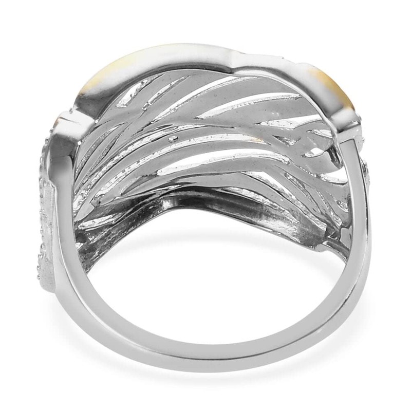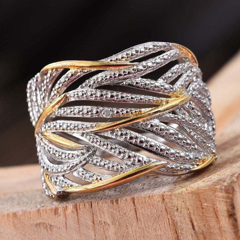 TJC Criss Cross Ring for Women Size N with with Prongs Setting Promise Friendship Band in Platinum and Yellow Gold Plated 925 Sterling Silver April Birthstone Metal Wt. 3.85 Grams