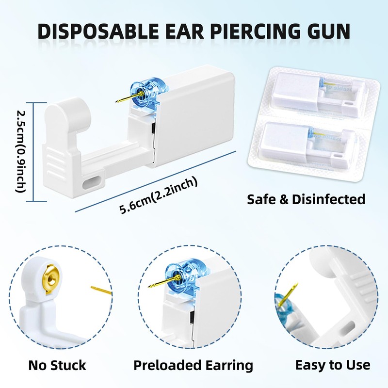 - EASY TO USE: The piercing process is quick, painless, and as simple as using a stapler. Just clean your hands, open the individual package, mark the desired piercing spot, aim, press, and you're done. The ear stud will be fixed where you want it and you can even perform the piercing on your own