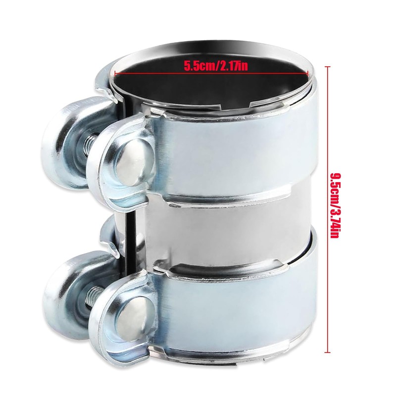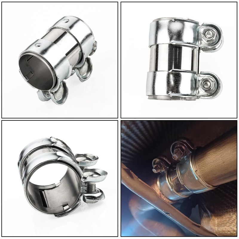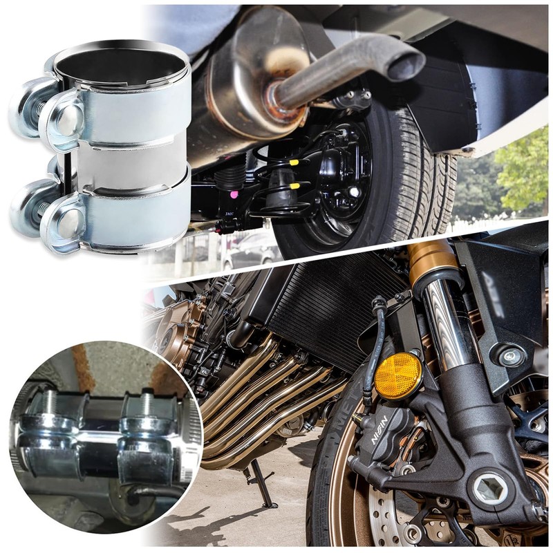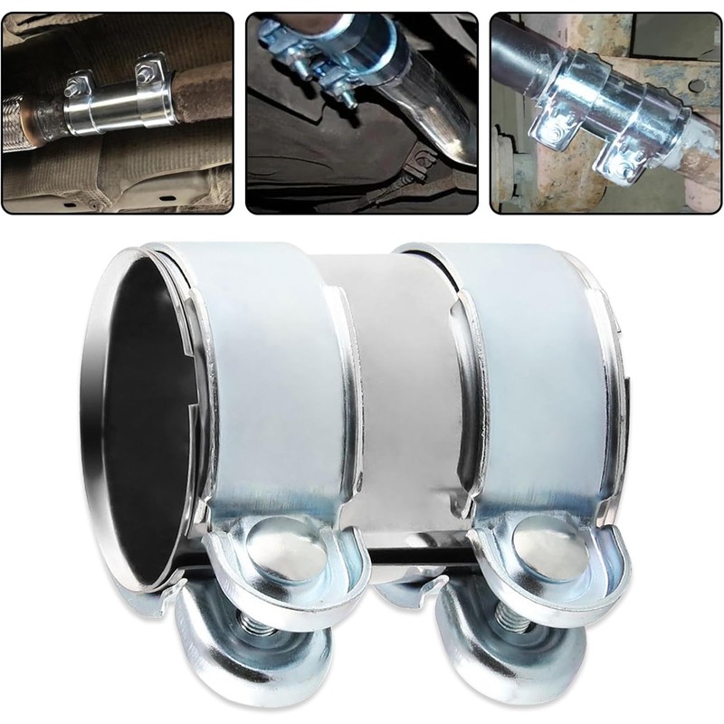 - Double clamp stainless steel exhaust clamp pipe connector double screw fastening ensures tight seal and firm fit. The exhaust pipe remains tight even in high speed or bad road conditions.