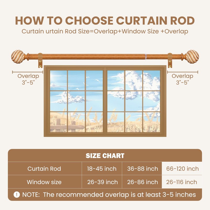- TKZTKZ Adjustable Wood Curtain Rod:Highlight of imitation wood curtain rod it adjustable,we offer bohemian coast wooden curtain rod in a variety of sizes(18-45",36-88",66-120"),boho adjustable curtain rod can be perfectly adapted to small or big window sizes.Farmhouse curtain rods can increase or decrease the splicing rod,telescopic adjustable to adapt to different widths of window to meet diversified need of rustic wooden curtain rod for windows,cortineros para ventanas for your home decorating