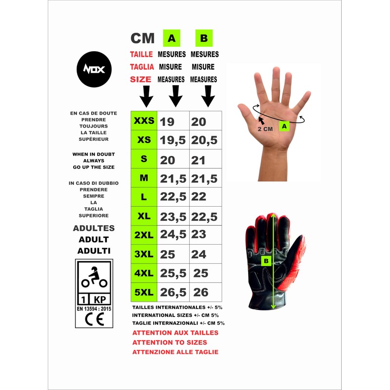 - Robuste Motorradhandschuhe aus Leder mit Knöchelschutz EN 13594:2015 für Frankreich, getestet und bewährt auf Rennstrecken und Straßen auf der ganzen Welt, Größen von XS bis 5XL für Männer und Frauen.