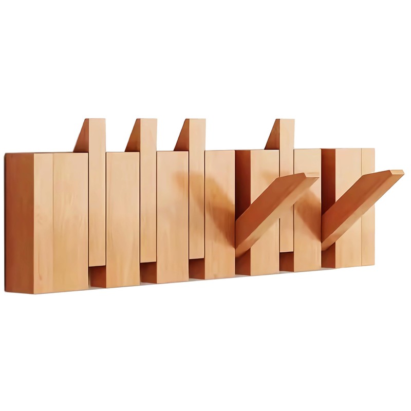 Tlongxia【Beech-6 Hooks Wall Mounted Coat RackHooks Piano Key Hangers Natural Solid Wood Hangers Non-Woven Fabric Clothes Hangers for Closet, Kitchen, Bedroom, Bathroom, Entryway
