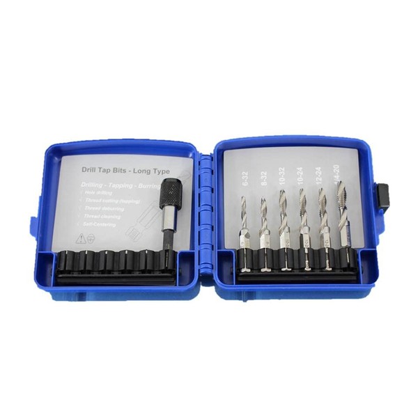 - Contains sizes: 6-32, 8-32, 10-24, 10-32, 12-24, 1/4-20 and one quick change Adapter in a heavy duty case.