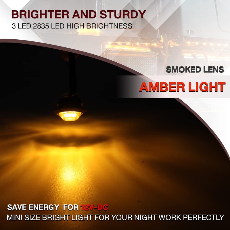 - Pack of 10 : 3/4" Smoked Lens Amber Light Round Miniature Side Marker Lights