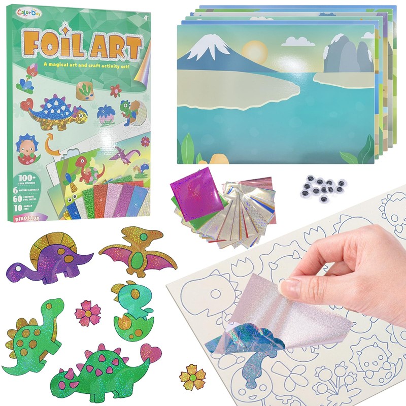 - Engaging Foil Fun Dinosaur Set: Our Art & Craft Activity for Kids features the exciting Foil Fun Dinosaur Set, which includes 60 colorful foil sheets, 6 picture canvases, and over 100 foam stickers. This comprehensive kit provides hours of creative play and imaginative fun while allowing children to explore their artistic skills!