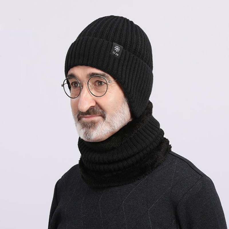 TMRBBesty Men's Winter Hat with Ear Flaps and Winter Scarf Thickening Inner Lining with Plush for Outdoor Warm Grey, black