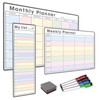 TMS #1 Magnetic Whiteboard Planner Pack/Custom Dry Erase Set | Weekly Planner, My List, Monthly Calendar | 4 Dry Wipe Marker Pens, Eraser (Pastel, Bundle 1)