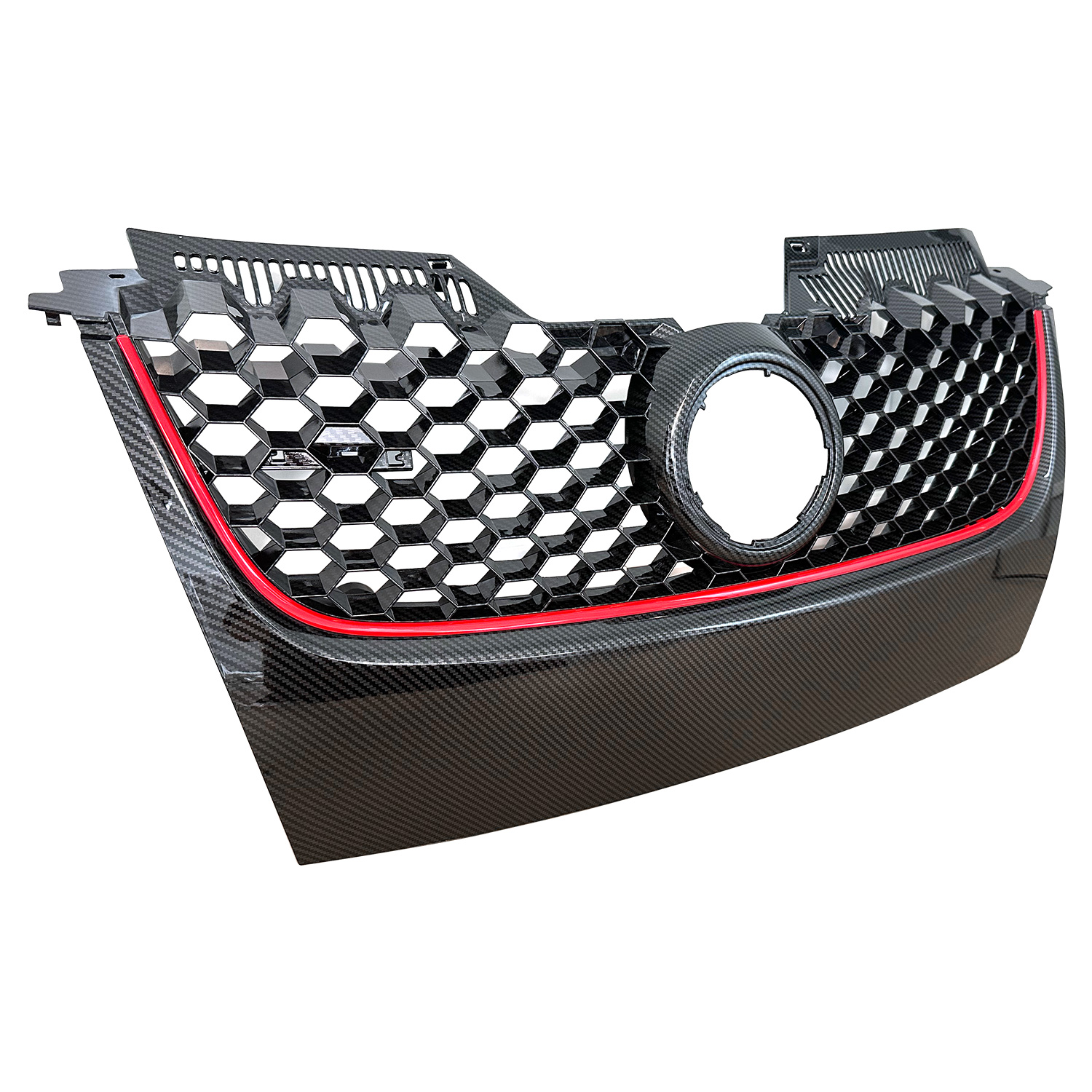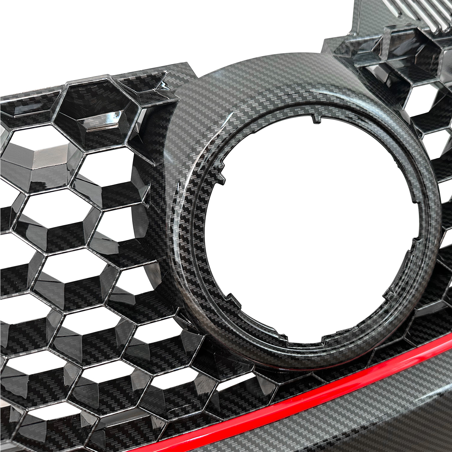 TMS-MOTORS New Carbon Fiber Print Front Honeycomb Grille W/RED TRIM For06-09 VW MK5 GLI/GTI