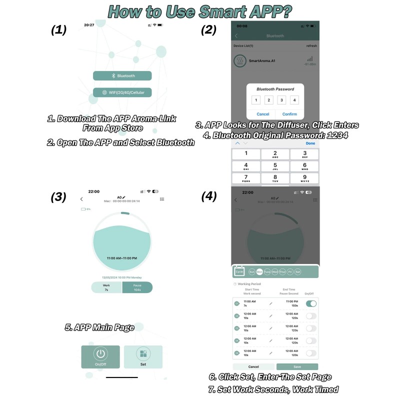 【BLUETOOTH SMART APP CONTROL】The waterless aromatherapy diffuser is very easy to control for every customer. Download the app AROMA-LINK, use the bluetooth to connect with your fragrance machine, setting the working time. It will more easy to know how to use it than the regular diffuser with buttons. If you do not know how to use the app, please contact us.