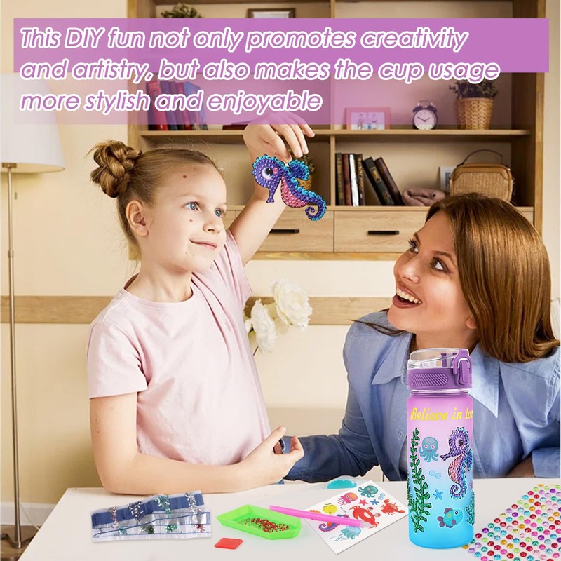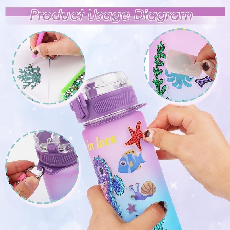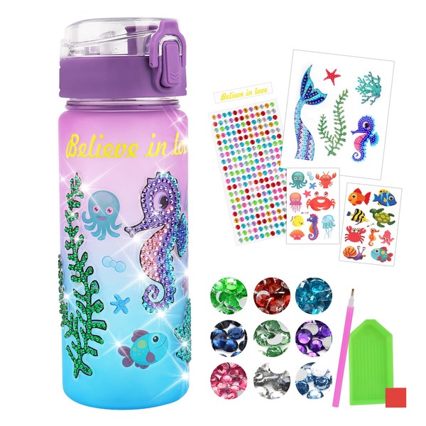 TNEDFOD DIY Water Bottle Kits, Water Bottle Mermaid Toy, Mermaid Gifts for Girls 5-6-7-8-9 Years Gift Ideas Diamond Painting Children's Birthday Gift Idea