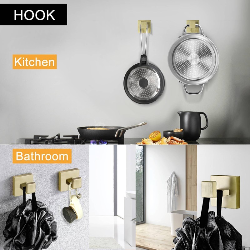 - [FULL FUNCTIONAL] Gold set includes: towel bar, towel ring, toilet paper holder and two towel hooks. Solve your entire toilet and bathroom matching needs.